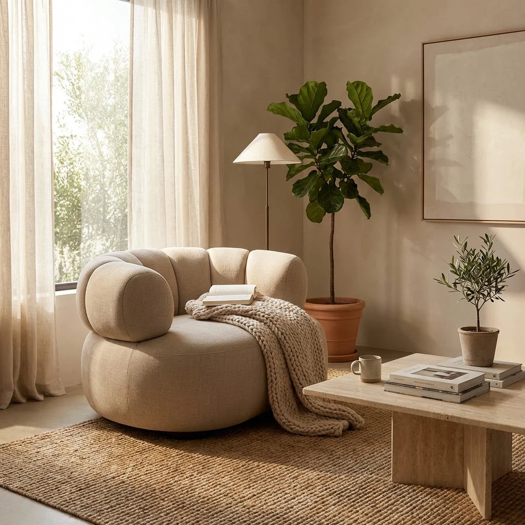 Ava Boucle Accent Chair - Solid Wood Frame Cream Neutral