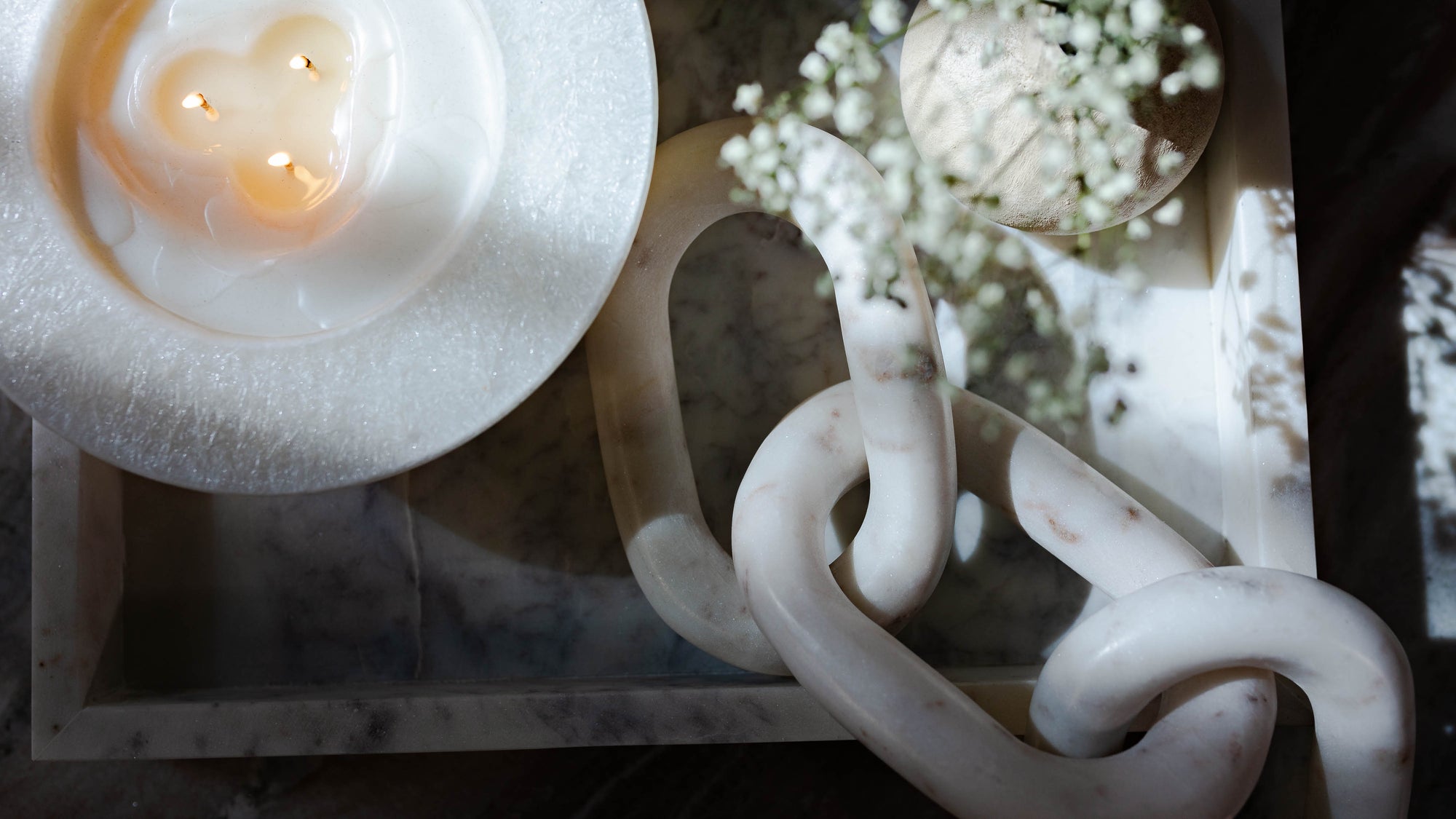 " The white marble chain link is stunning and looks beautiful next to my other white art pieces on my coffee table."