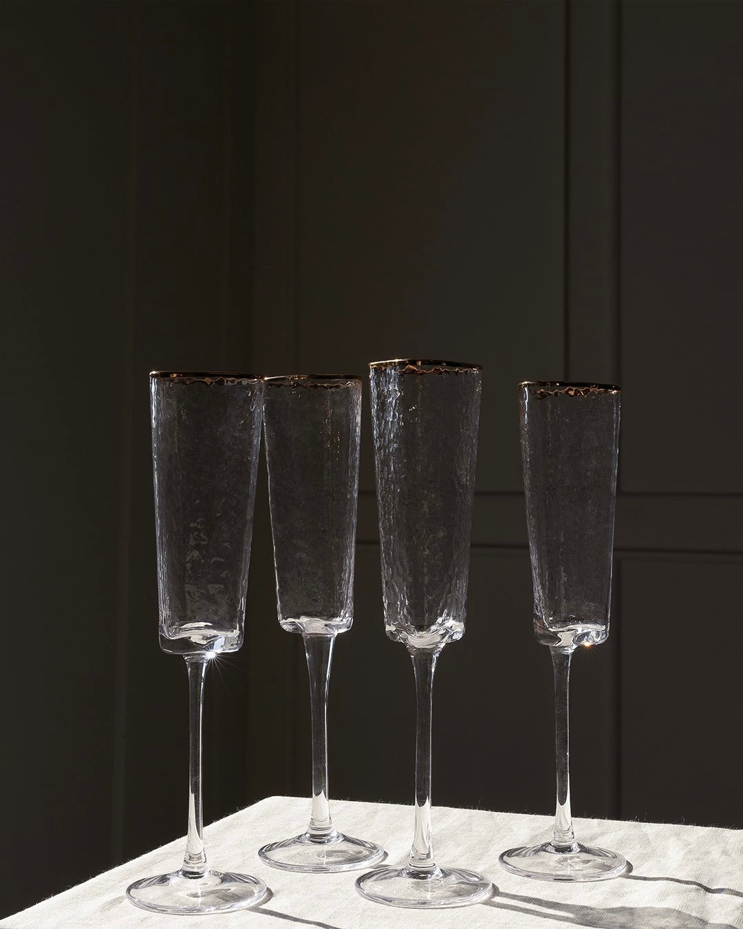 Roma Champagne Flutes Set of 4 - 24K Gold Rim Textured Glass