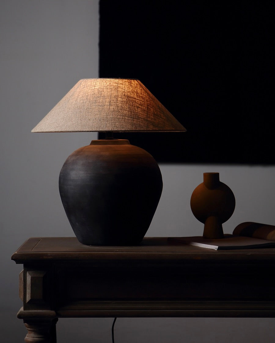 Zarita Minimalist Table Lamp - Black & Tan Textured 17.3" H